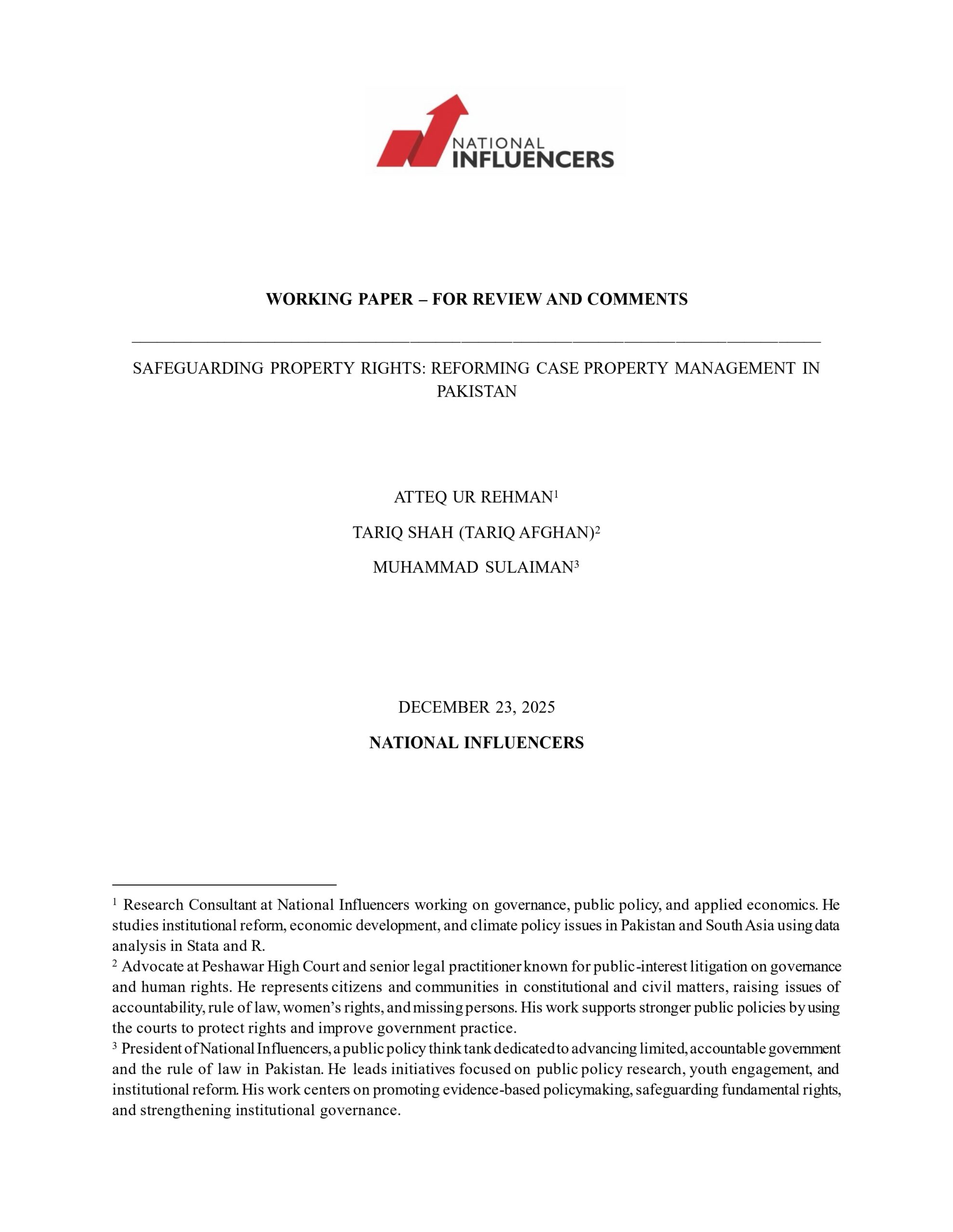 This document is a working draft of the research paper “Safeguarding Property Rights: Reforming Case Property Management in Pakistan.” It is made publicly available to invite comments, critiques, and suggestions. The paper will be updated before final publication.